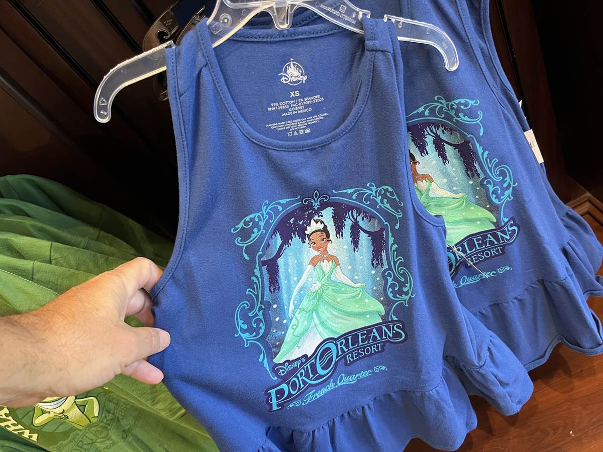 Given the theme of the resort and the setting for The Princess and the Frog, it’s no surprise that Tiana has become the unofficial mascot for the resort, and appears on her own line of Port Orleans Resort merchandise that also features other characters from the 2009 film.
