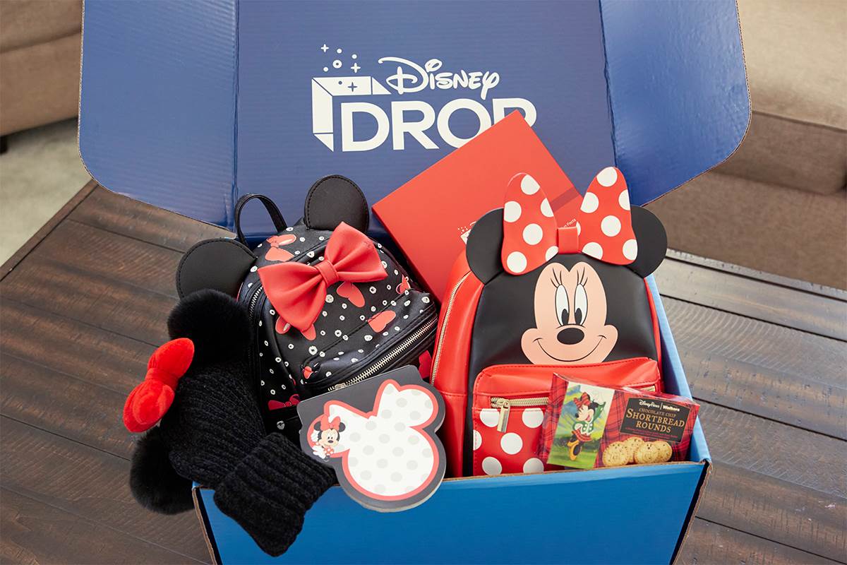 - Gift yourself with the happiest box on earth! Disney+’s Disney Drop box is a specially designed and curated package of 8-10 premium Disney products, featuring some of the most beloved franchises, such as Mickey Mouse, Minnie Mouse, Frozen, The Lion King, Aladdin, Moana, Toy Story, The Little Mermaid, Beauty & the Beast, Spiderman, Cars, and Cinderella.