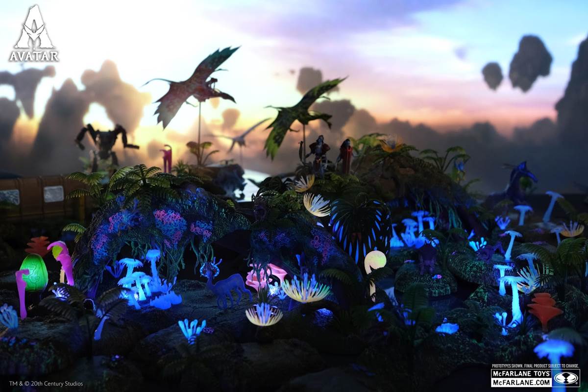 - The image above features all kinds of familiar beings from the film, including banshees, the A.M.P. suit, bioluminescent plantlife and of course, the Na’vi.
