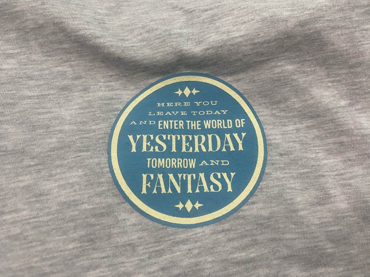 These iconic words can be found on the back of the shirt.