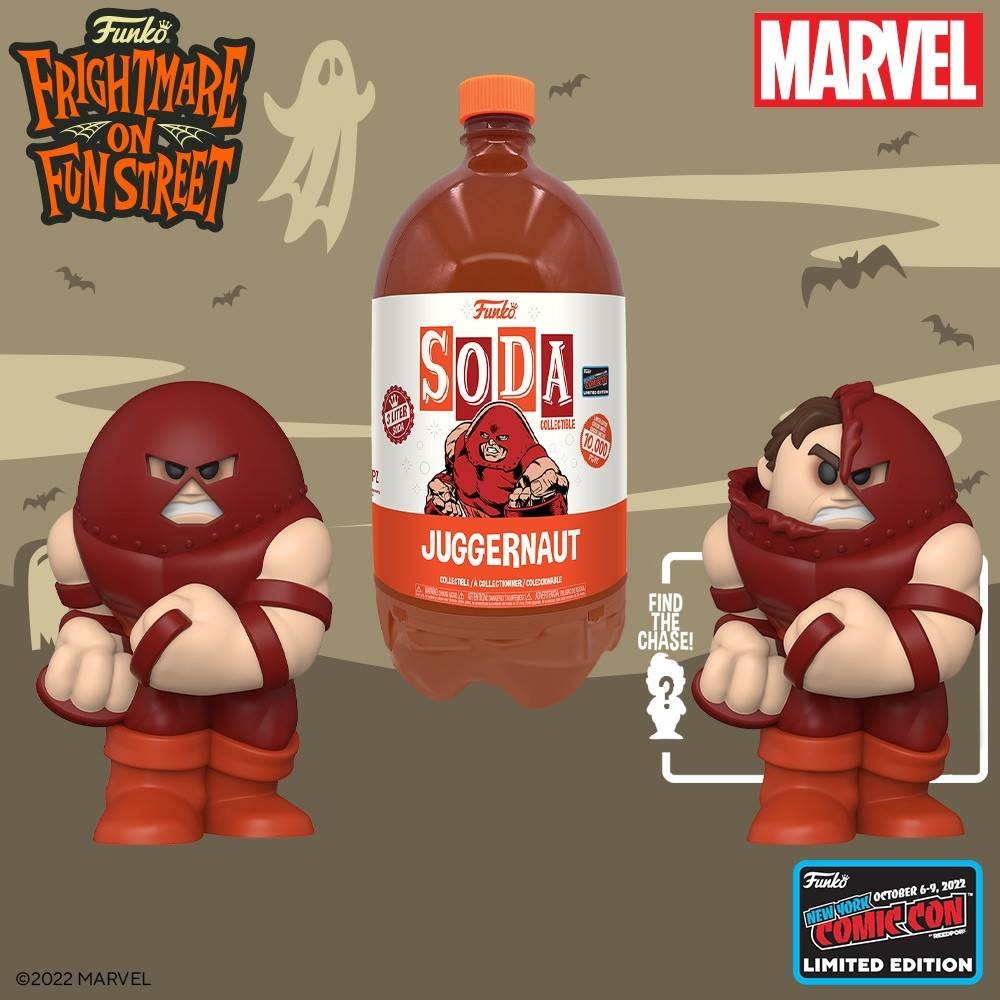 Make way for Juggernaut! A terrifying name and equally scary mutant! The Marvel character gets the Funko Soda (3-liter) treatment, and the chase variant features him with a damage helmet.