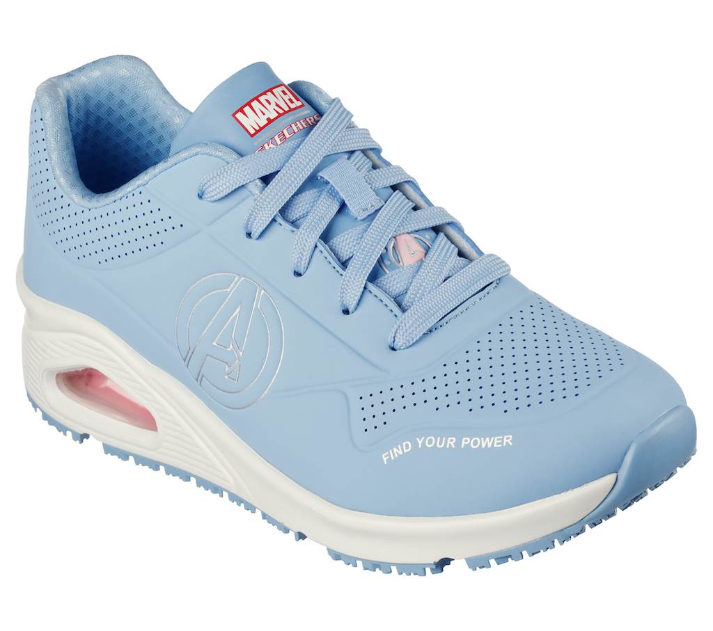 - The Marvel x Skechers collaboration offers footwear that incorporates safety and comfort features like steel toes and memory foam insoles that essential workers require along with Marvel-inspired designs that fans will love for a collection that meets the needs of the heroes in our lives on and off duty.
