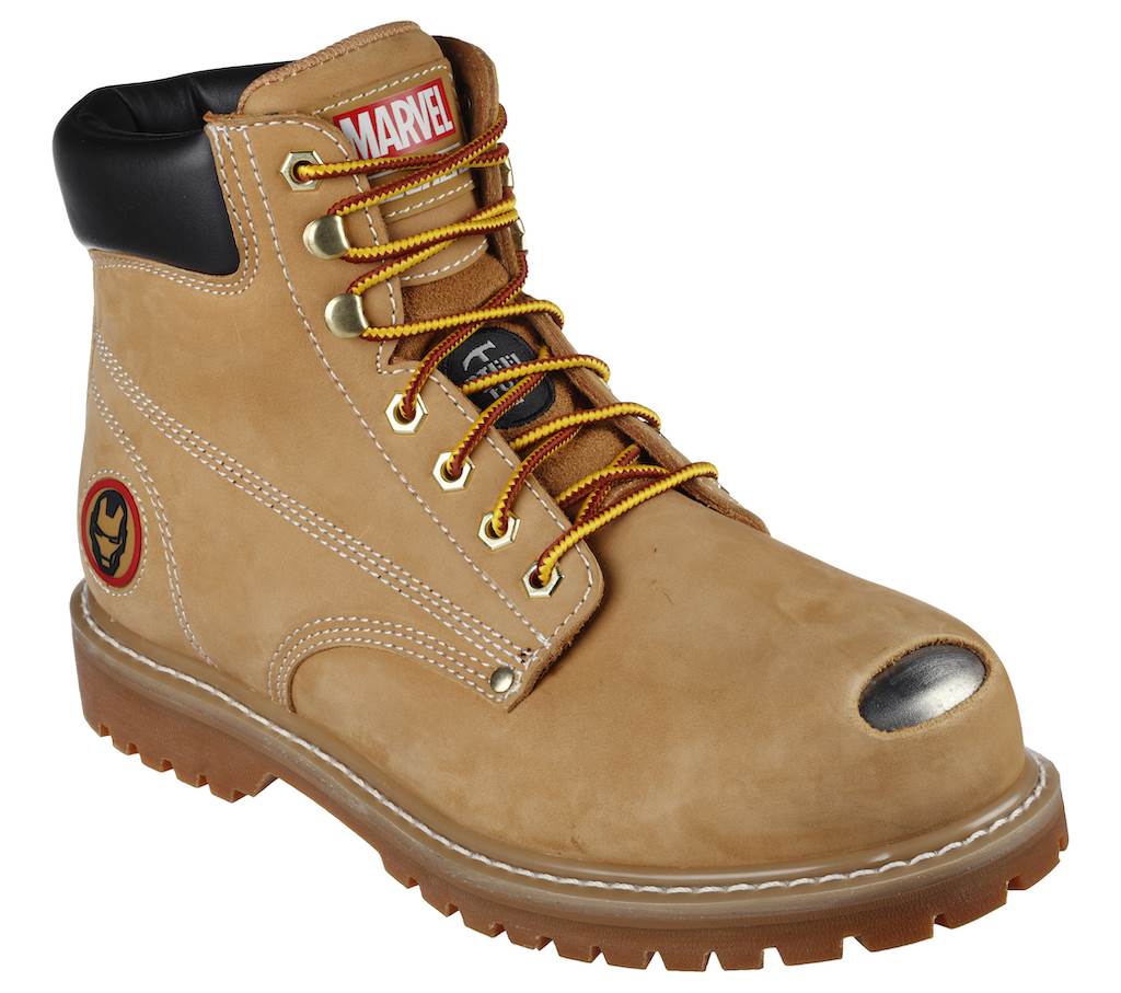 Strong as iron, the Trevork (black or brown) and Trevork II – Armor Out (black) are inspired by Tony Stark himself, with steel safety toe and Iron Man logo on the side heel.