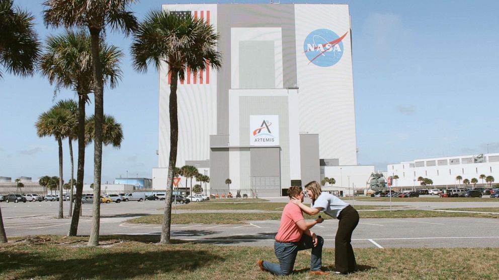 - "Jared decided the perfect place to propose would be the Vehicle Assembly Building at Kennedy Space Center, since our love of space brought us together, and -- as he said when he asked -- because 'he loves me to the moon and back' ...like the Artemis missions," Weber told "Good Morning America."