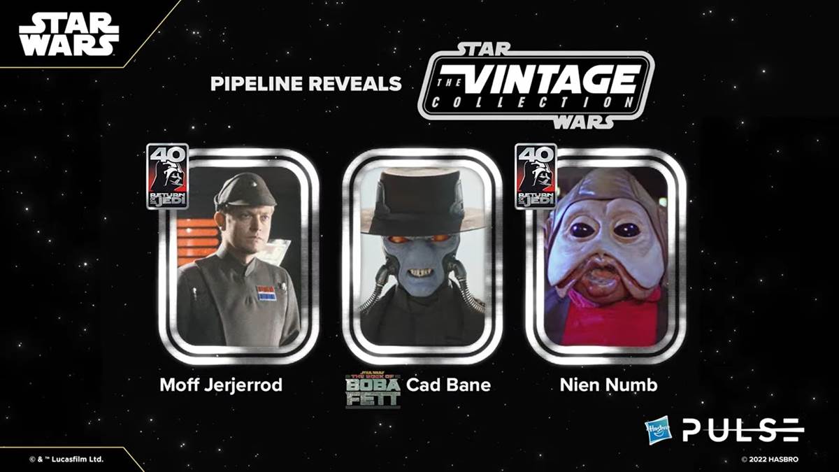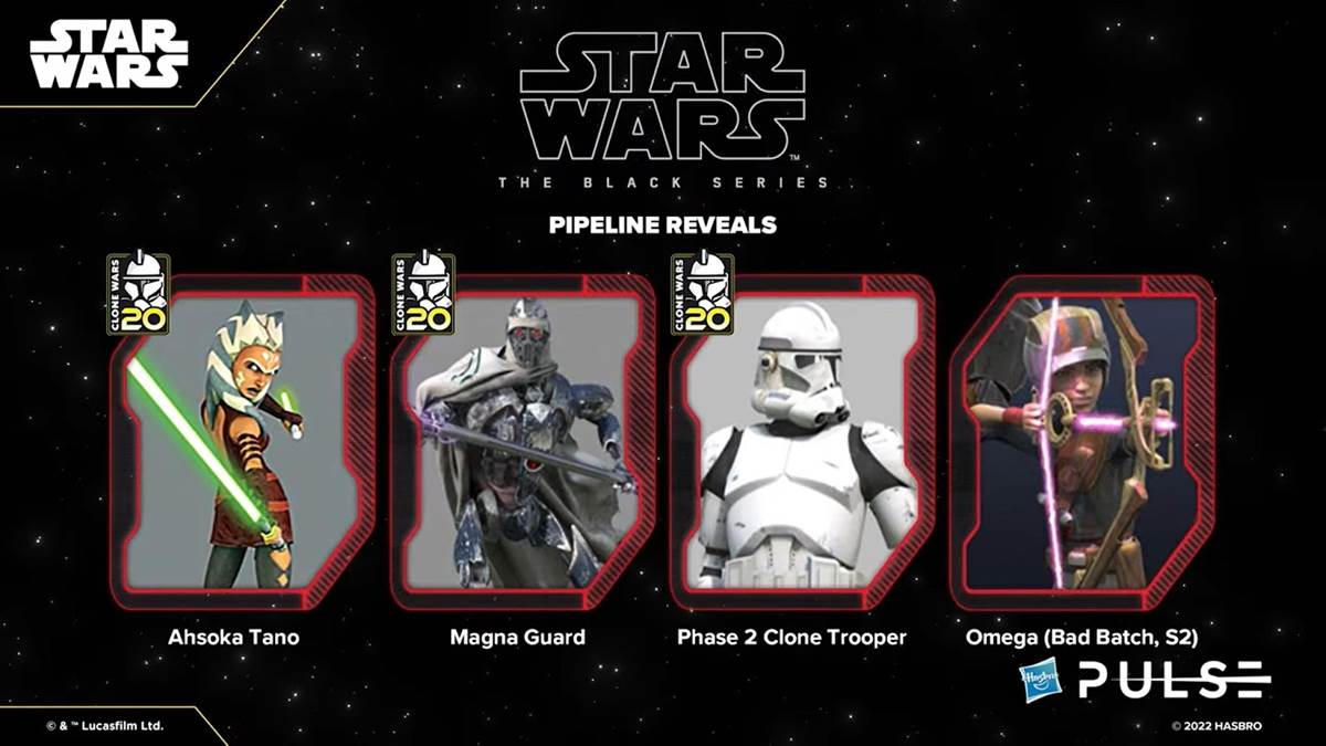 Pipeline reveals for The Vintage Collection included Moff Jerjerrod and Nien Nunb from Return of the Jedi and Cad Bane from The Book of Boba Fett. The Black Series pipeline reveals were Ahsoka Tano in her early Padawan outfit, a MagnaGuard, and a Phase 2 Clone Trooper (all from The Clone Wars) plus Omega from season 2 of The Bad Batch.