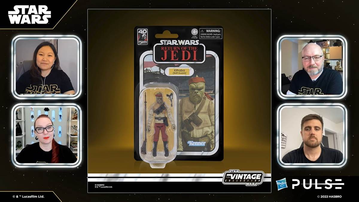 Next the team revealed some new Return of the Jedi figures for the 3 ¾-inch Vintage Collection in celebration of the movie’s upcoming 40th anniversary: Nikto (Skiff Guard), Kithaba (Skiff Guard), Wooof, and Saelt Maere (AKA Yak Face).