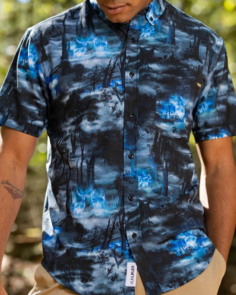 “Think of the happiest memory you can. Was it when you laid eyes on this ominous yet luminous KUNUFLEX button down 10 seconds ago? Thought so. Featuring a pack of protective Patronuses ready to cast away an army of demonic Dementors, it is with this shirt that you feel the deepest affinity."