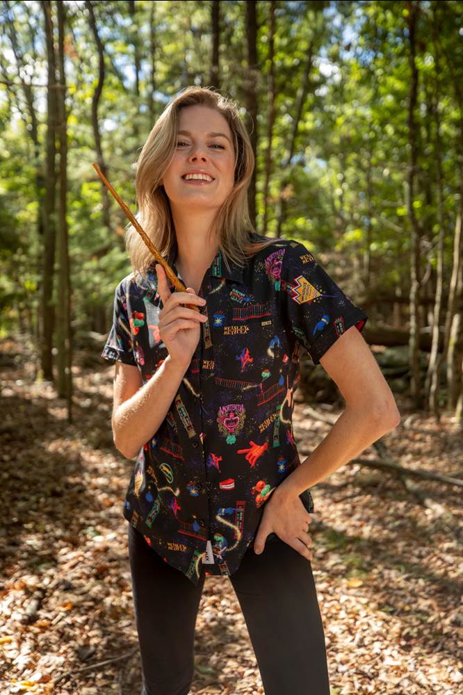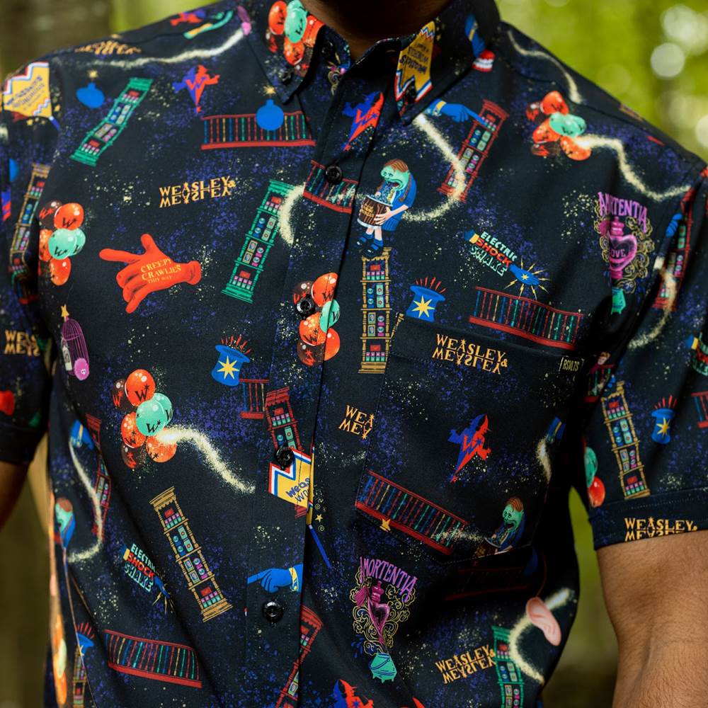 - This lineup delivers two patterned short sleeve button downs—Expecto Patronum and Weasley’s Wizarding Wheezes—that are available in Adult and Ladies cuts.