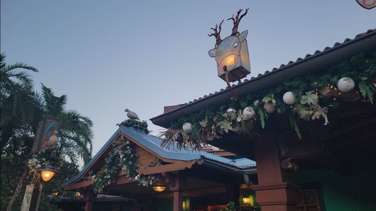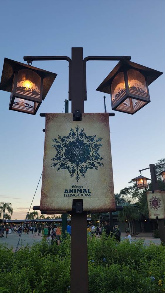 Winter decorations await guests as soon as they approach the entrance to Disney’s Animal Kingdom.