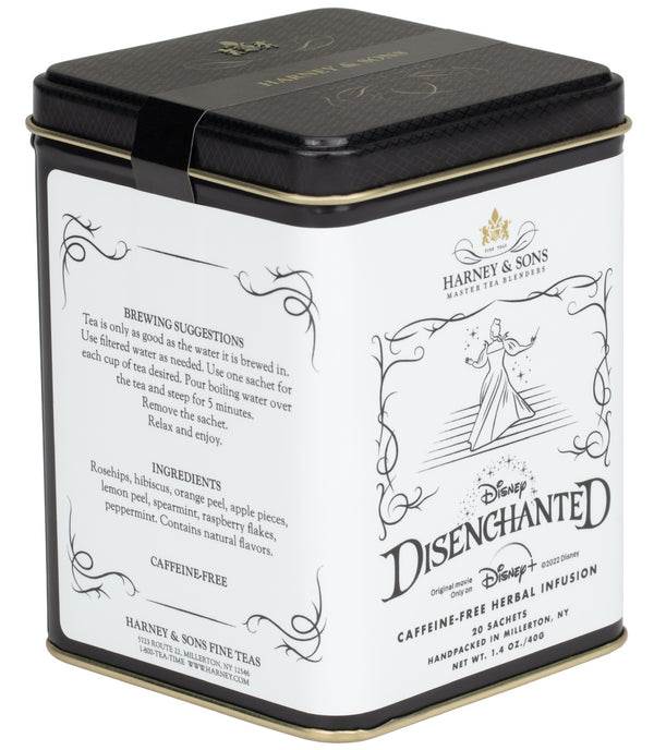 - The Disenchanted tea blend is packaged in a collectible tin and comes with 20 single serve sachets for sharing with friends or keeping to yourself!