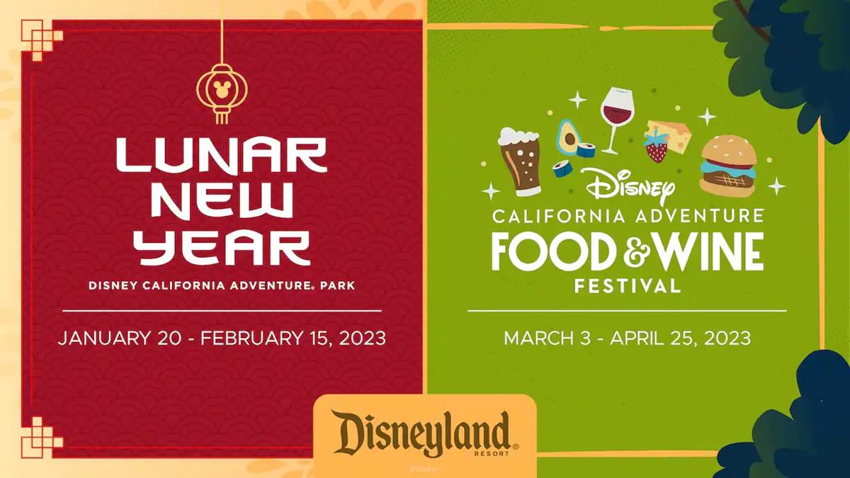 - The Lunar New Year Celebration will take place from January 20th through February 15th, 2023, while the Disney California Food & Wine Festival will run from March 3rd through April 25th, 2023.