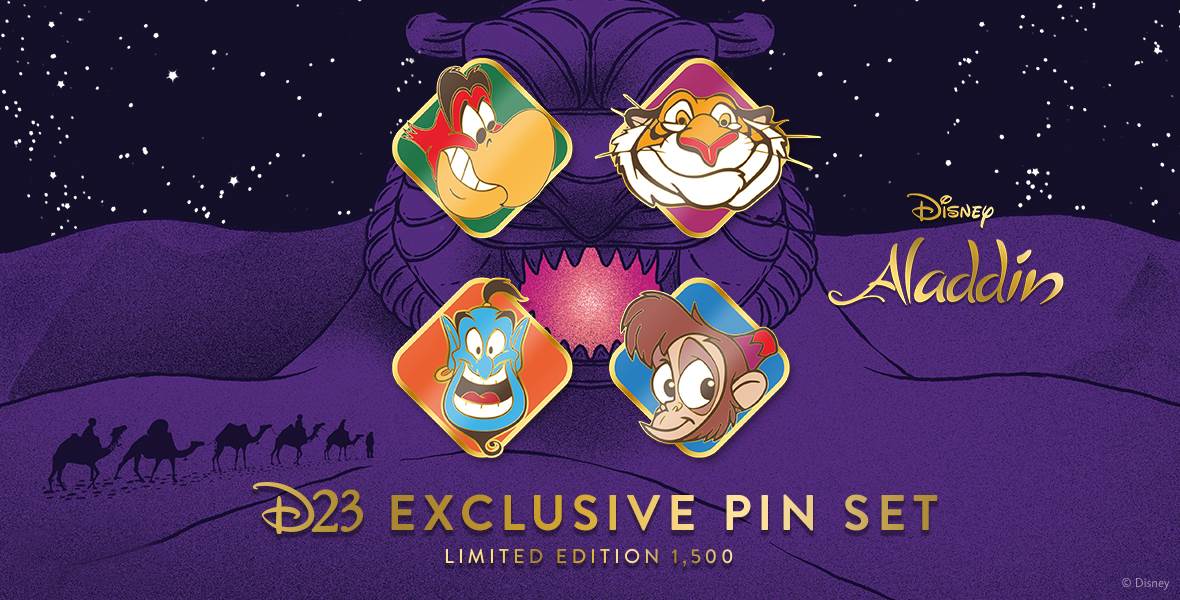 - The Aladdin 30th Anniversary pin set, offered in a limited edition of 1,500, is now available to D23 Gold Members for $19.99 on shopDisney.