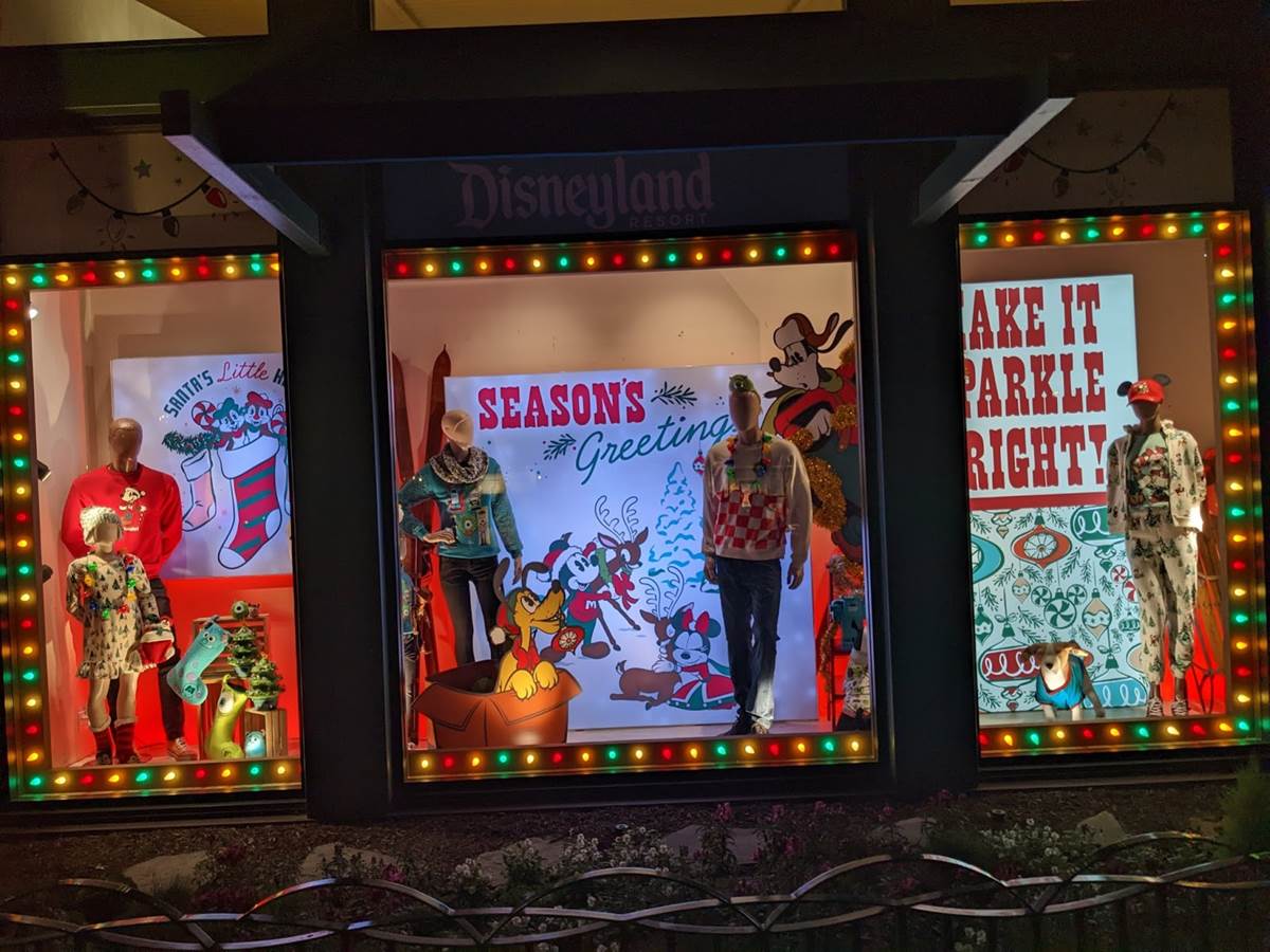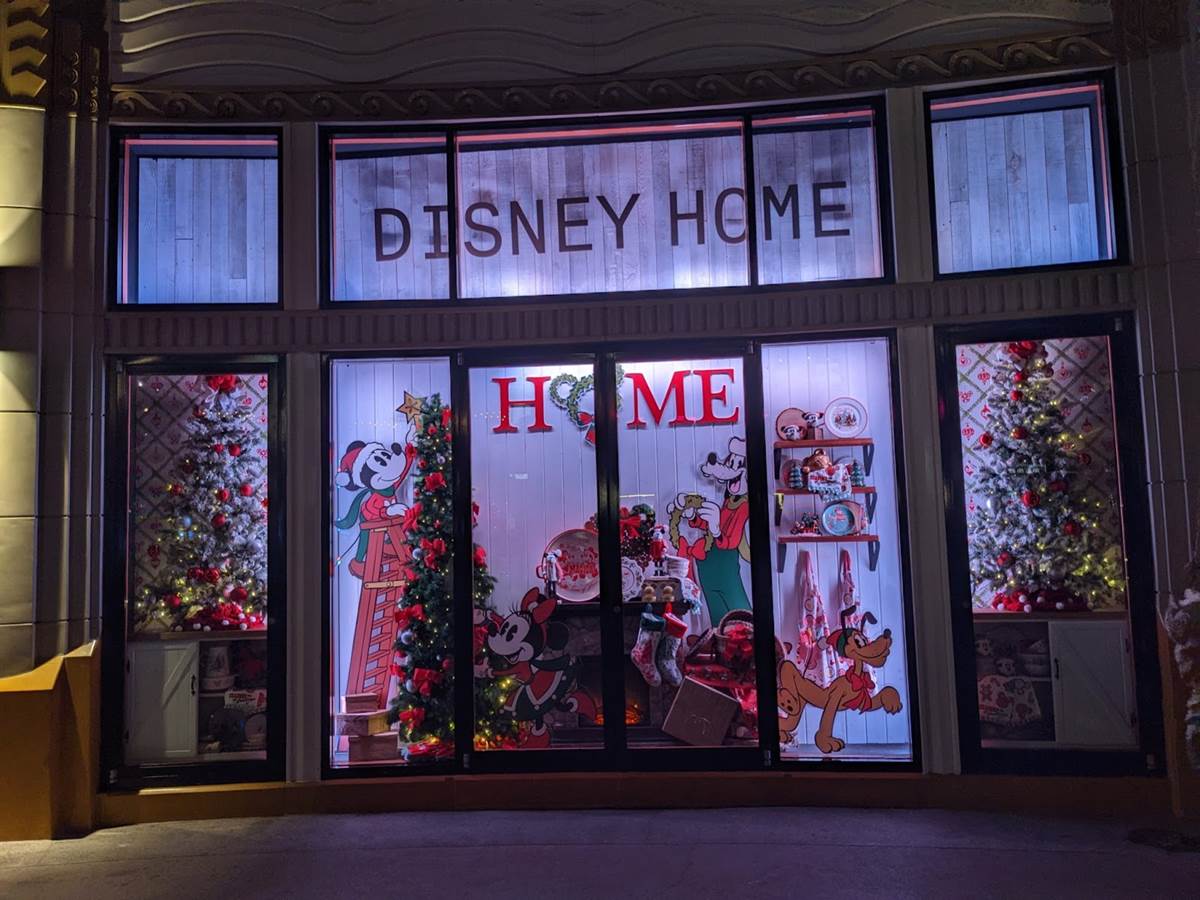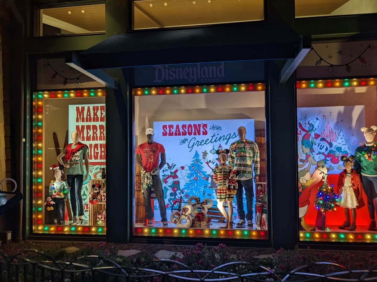 The World of Disney shop windows wish Season’s Greetings with beautiful lights.
