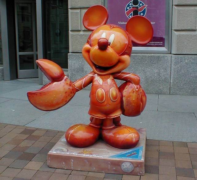 - The 700-pound statue is one of 75 Mickey Mouse-inspired sculptures commissioned by Disney for his 75th anniversary in 2003.