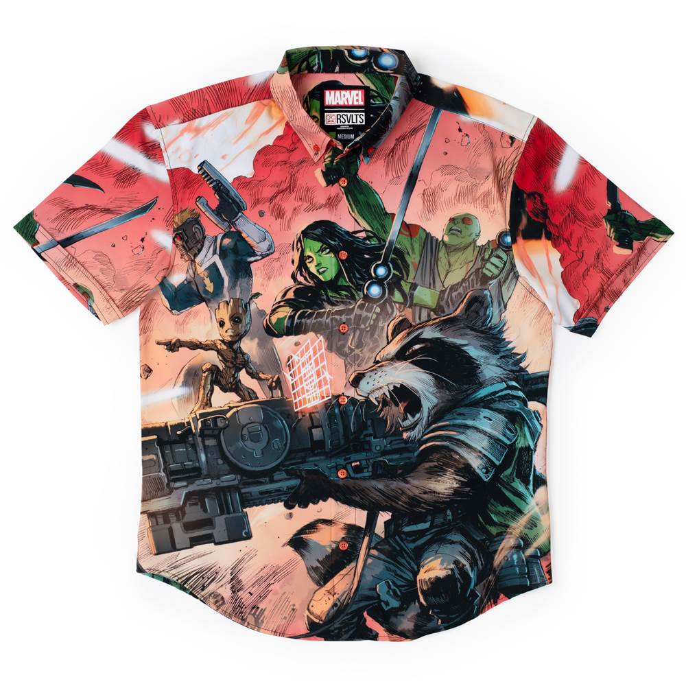 Soo, this weekend is Los Angeles Comic-Con and RSVLTS is bringing their signature shirts to the showfloor, but they’re also delivering a new exclusive. It’s the Guardians of the Galaxy’s time to shine on an all new button down that will only be available at LACC!