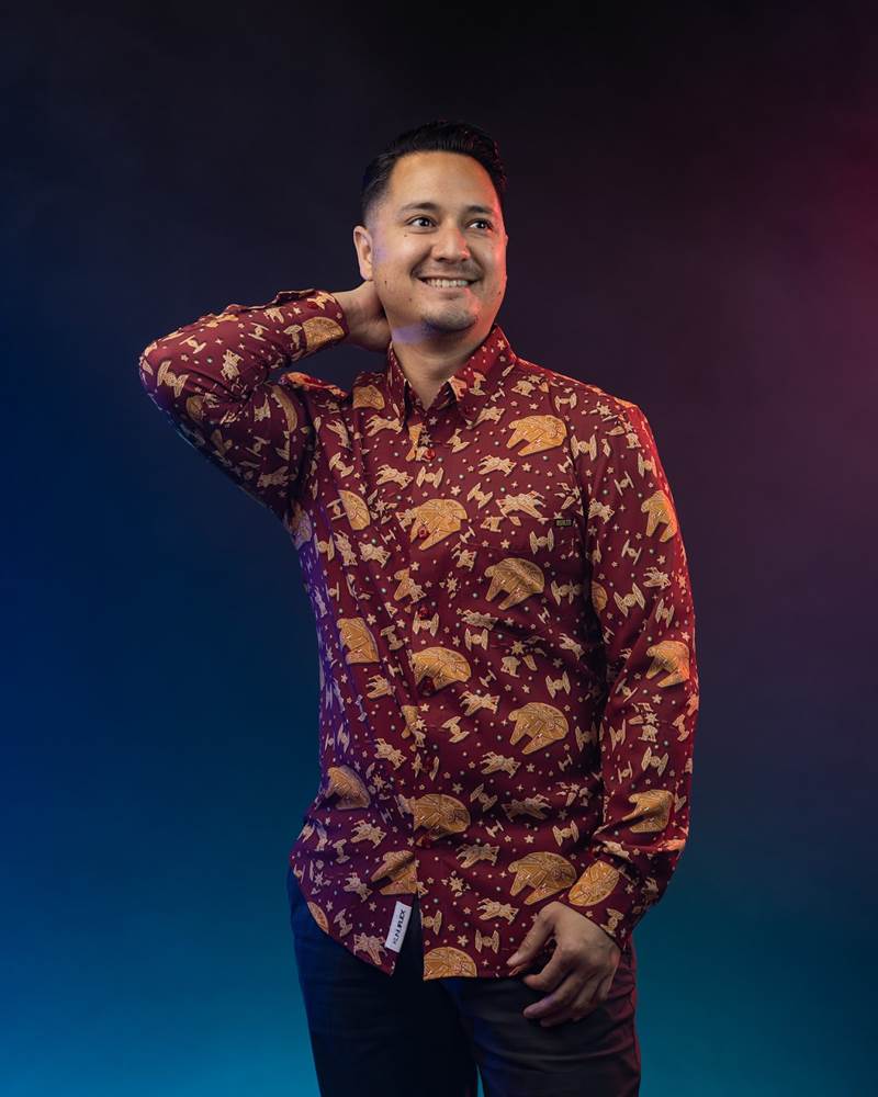 Deck the Hoth and Rebel Crumb Shirts by RSVLTS ($70 each) - “There’s no place like Hoth for the holidays. Give yourself the gift of Star Wars with this soft and stretchy RSVLTS KUNUFLEX button down featuring a festively scarfed Han Solo, some merry snowspeeders, and a cute and cuddly Wampa just waiting to give you a hearty hug, of sorts. Available in long-sleeve, short-sleeve and women's styles. Pour yourself a cold glass of blue milk and take a bite out of the Empire with this soft and stretchy RSVLTS KUNUFLEX button down homage to two things that put everyone in a holly jolly mood: Star Wars and freshly baked cookies. Featuring gingerbread X-wings, TIE fighters, and Millennium Falcons, this delicious design is sure to make you the biggest hit in the galaxy this holiday season. Available in long-sleeve and short-sleeve styles."
