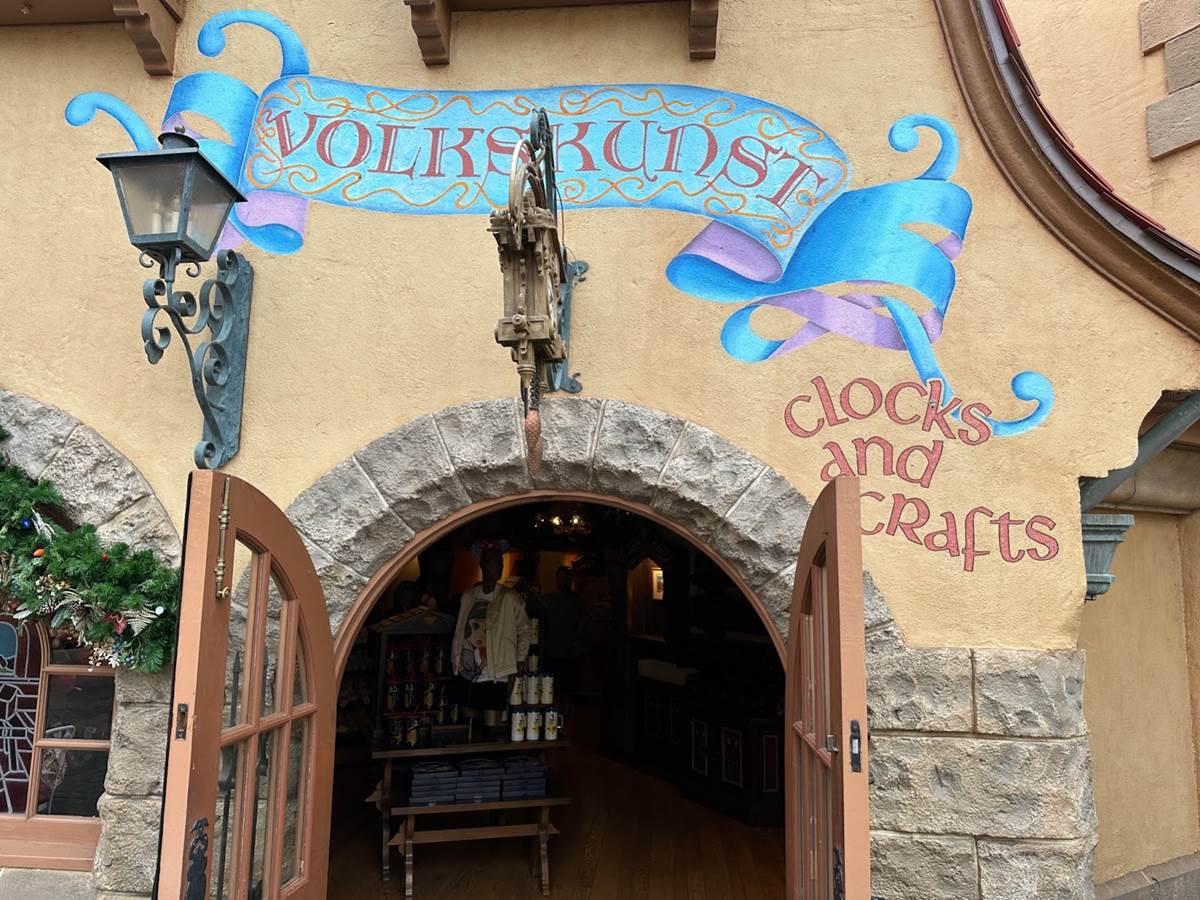 One of the last remaining stores at EPCOT to reopen following the pandemic closure of 2020 is Germany's Volkskunst Clocks and Crafts Shop, which has now finally reopened just in time for the holidays.