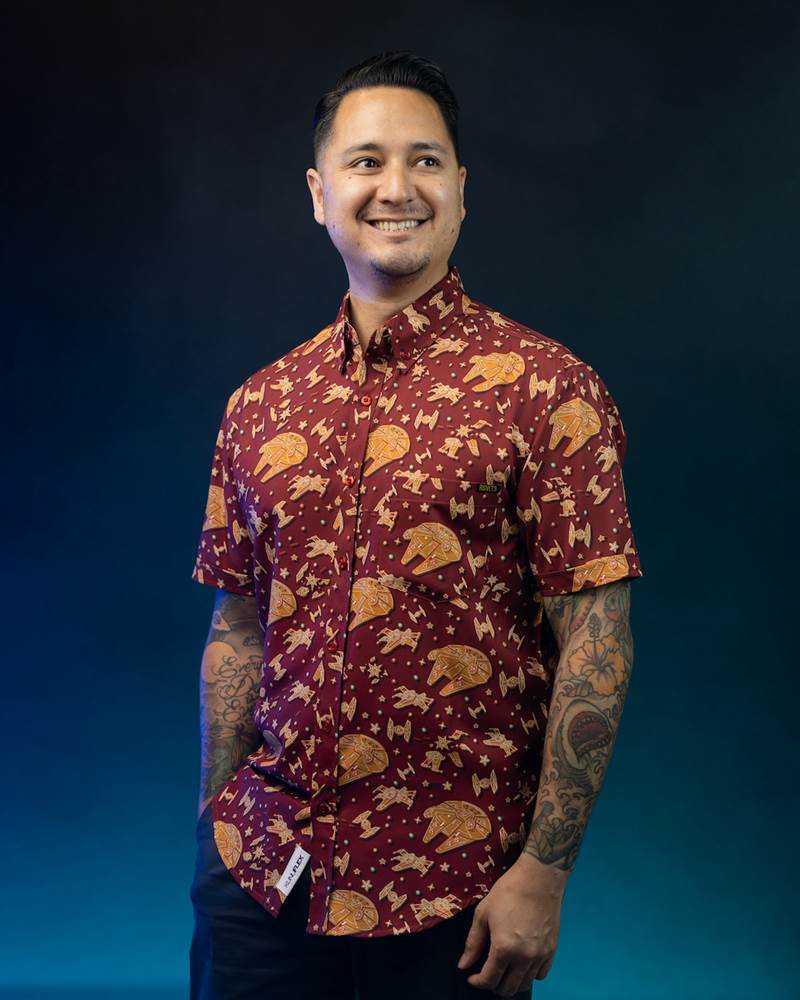 Picture this: you’re eating delicious gingerbread cookies while watching a Star Wars movie marathon when suddenly both elements become a part of your shirt! Oh wait, you don’t have to imagine it! You just need to pick up one of these cheery designs! The Millennium Falcon, X-Wings and yes, TIE Fighters have their chance to shine on this seasonal top that’s a little bit sweet and perfectly spicy!