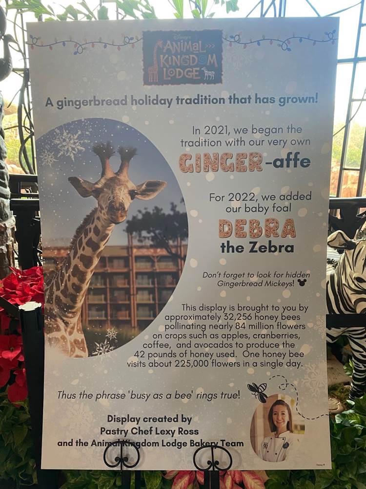 Last year, Disney’s Animal Kingdom Lodge began a new holiday tradition with their very own “Ginger-affe" gingerbread giraffe. This year, Ginger is accompanied by Debra the Zebra!