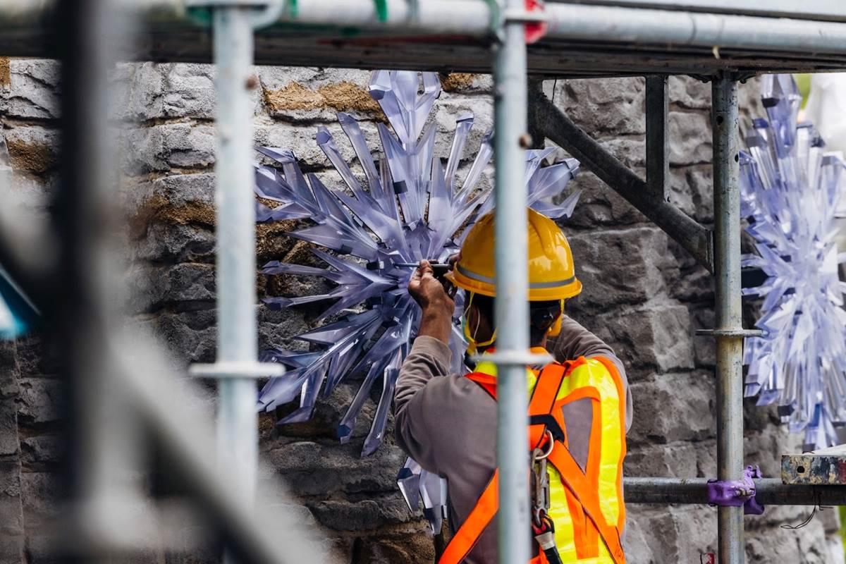Cast Members came together at Hong Kong Disneyland to sign pieces of “Ice Magic" which have been installed on Arendelle Castle inside the upcoming World of Frozen area.