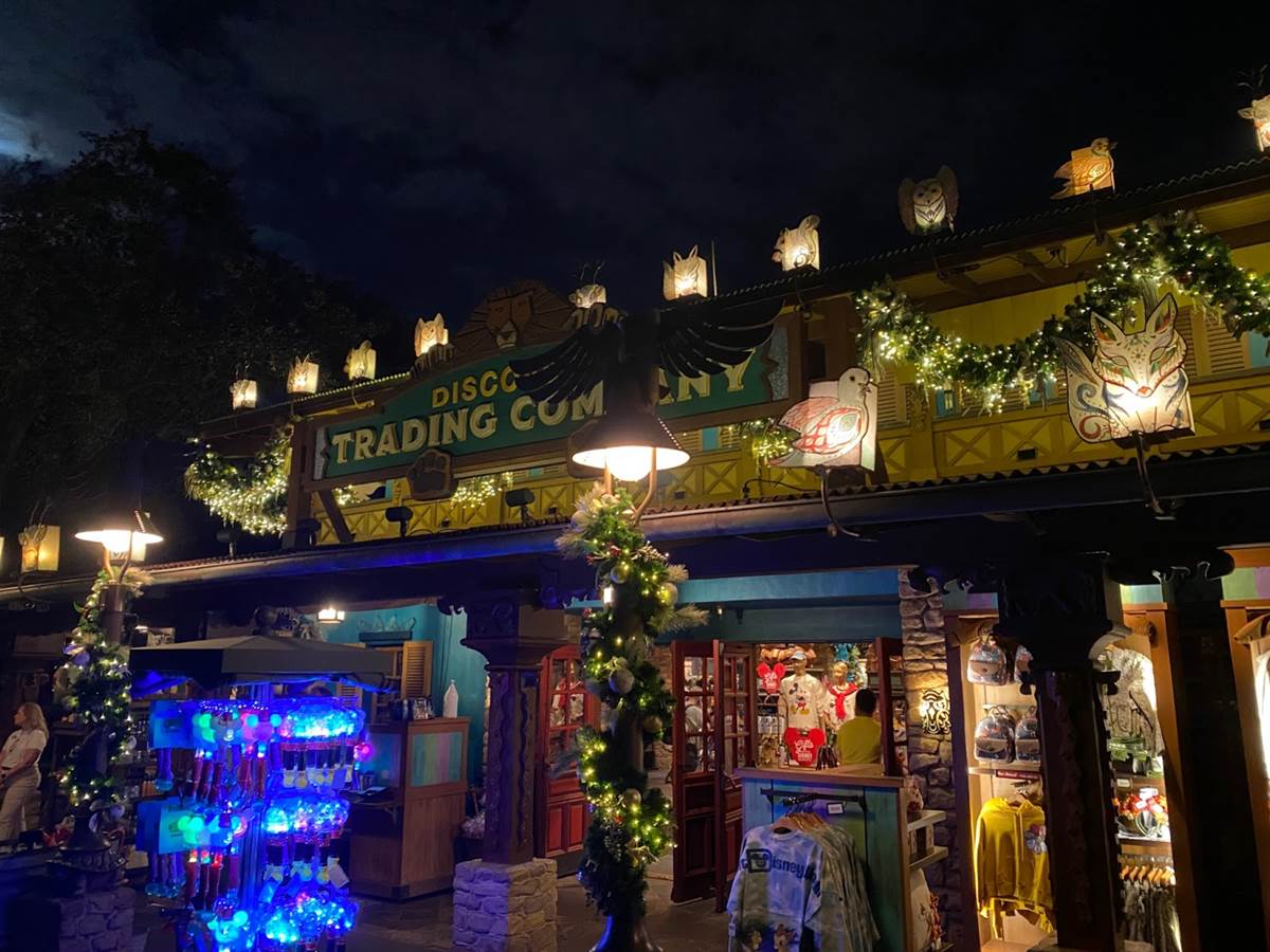 As with most things Christmas, the decorations of Discovery Island take on an even better vibe at night when the lights shine bright.