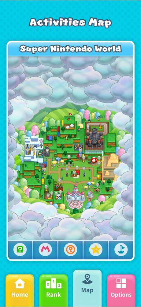 - From the app’s homepage, you can access the Super Nintendo World portal, which has the ability to add your Power-Up Band, check the leaderboard, and also features a full map of the area, done in classic Nintendo style.