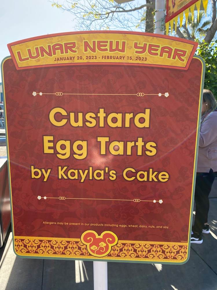 Kayla’s Cake, who have a permanent kiosk in Downtown Disney, are selling Custard Egg Tarts for Lunar New Year.