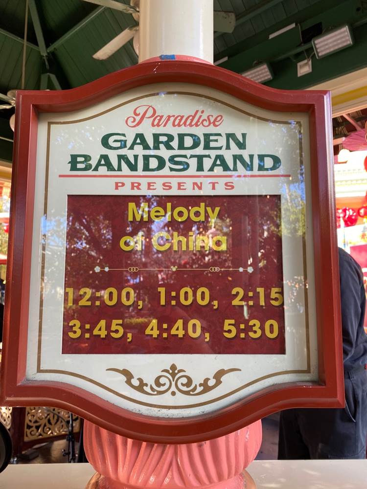 Melody of China perform at the Paradise Garden Bandstand multiple times throughout the day.