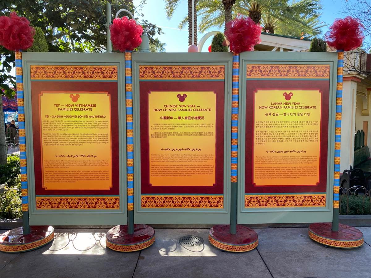 Fun and colorful banners feature Disney characters dressed in their best Lunar New Year attire.