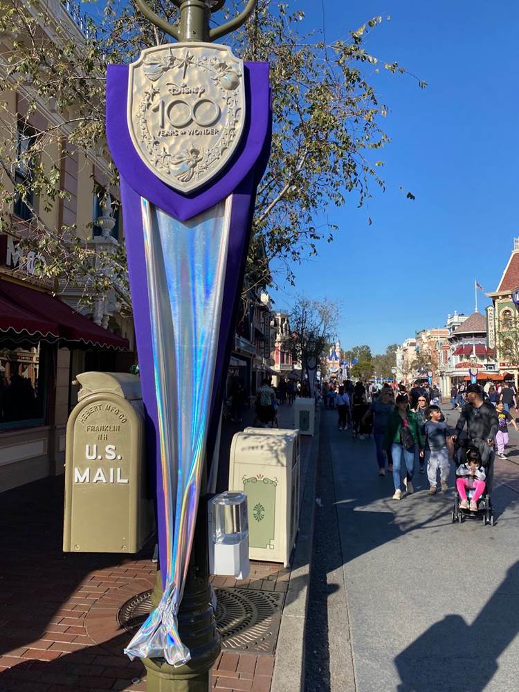 A few days ago, we took a look at some of the Disney100 decorations going up across the Disneyland Resort. While strolling through the Resort today, we noticed some additional new decor ahead of the launch of Disney100 this Friday.
