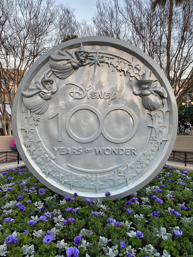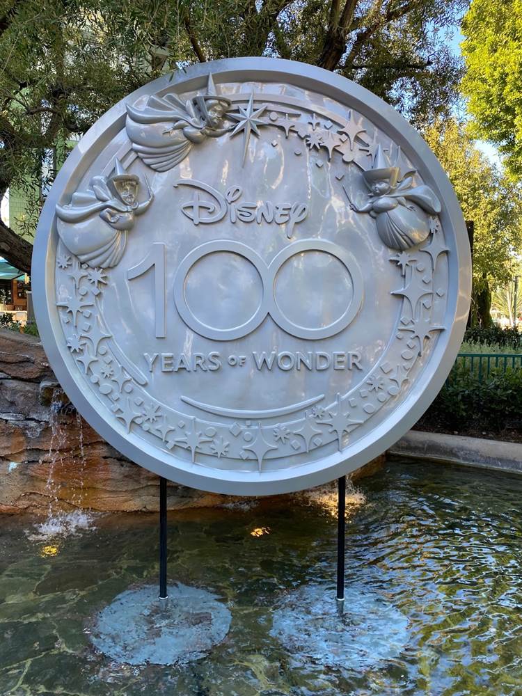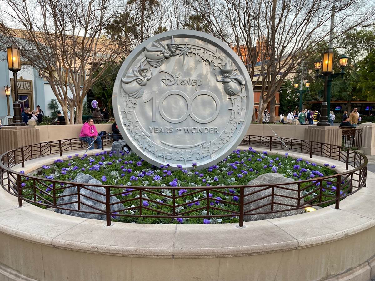 - Another giant Disney100 medallion can be found at the end of Buena Vista Street, where the Christmas Tree stands during the holiday season.
