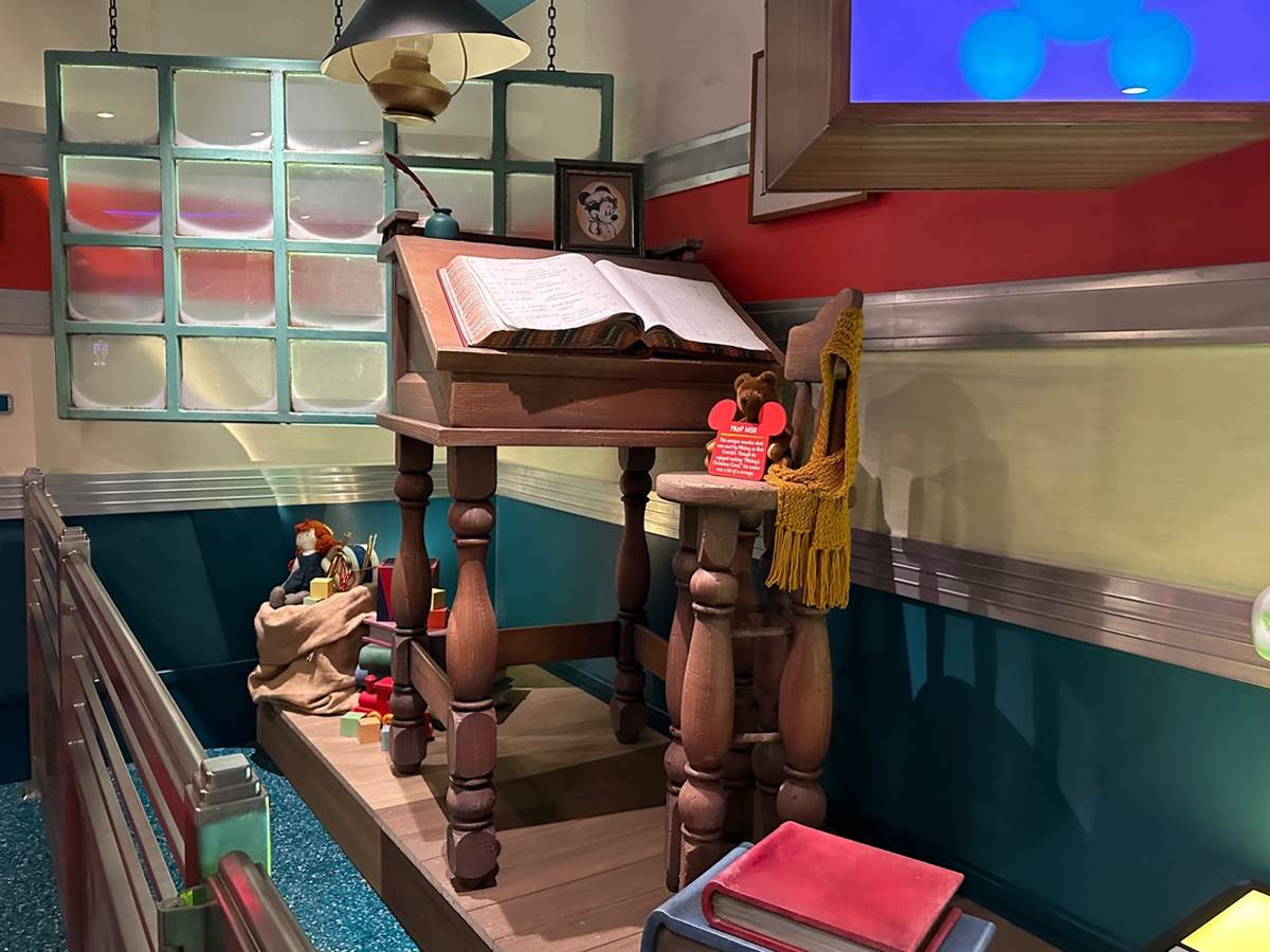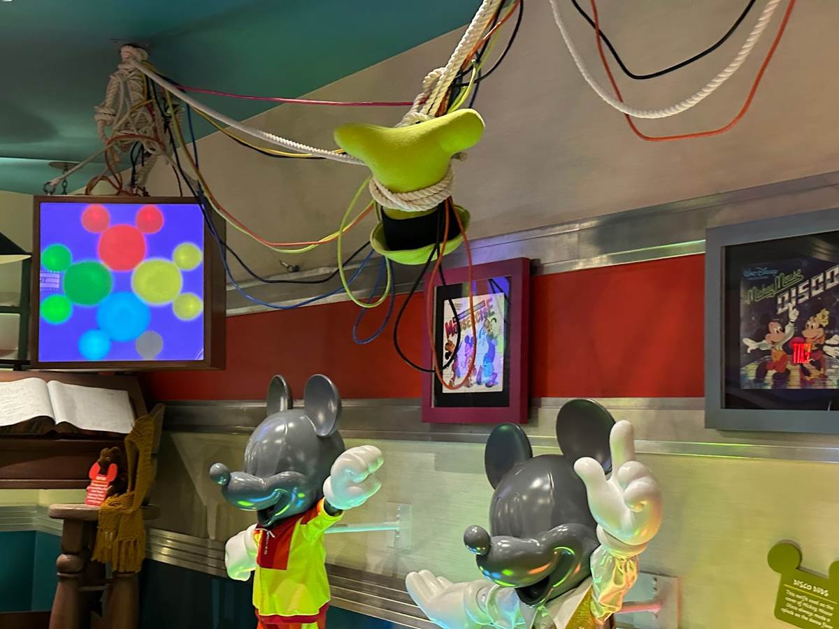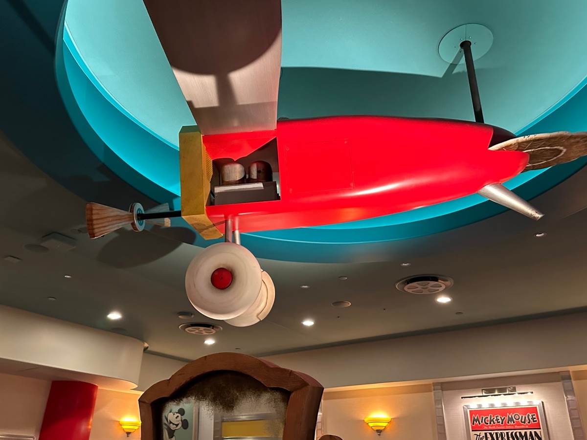 Mickey’s plane from the historical Plane Crazy short is featured front and center in this room.