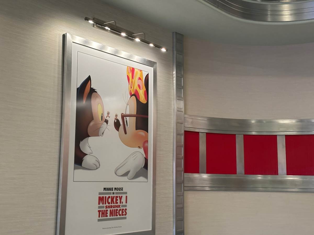 Families begin their adventure inside the El CapiTOON Theater, a place of “Hysterical Significance," for the premiere of a new Mickey Mouse cartoon short, Perfect Picnic. As you enter the queue, you’re first greeted by some fantastic spoof posters for classic Disney films, instead featuring Mickey and friends.