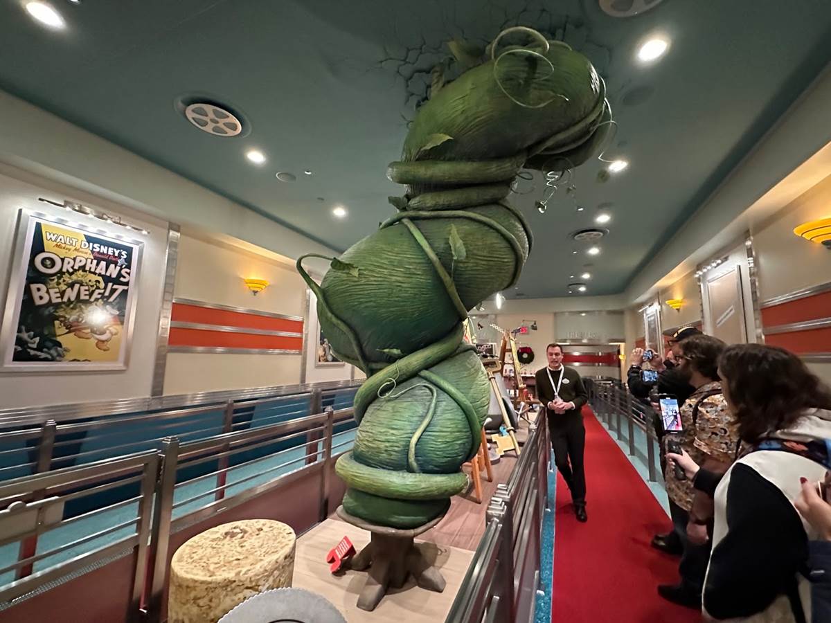 There’s even a giant beanstalk heading straight through the ceiling, from Mickey and the Beanstalk, part of the 1940s package film, Fun & Fancy Free.