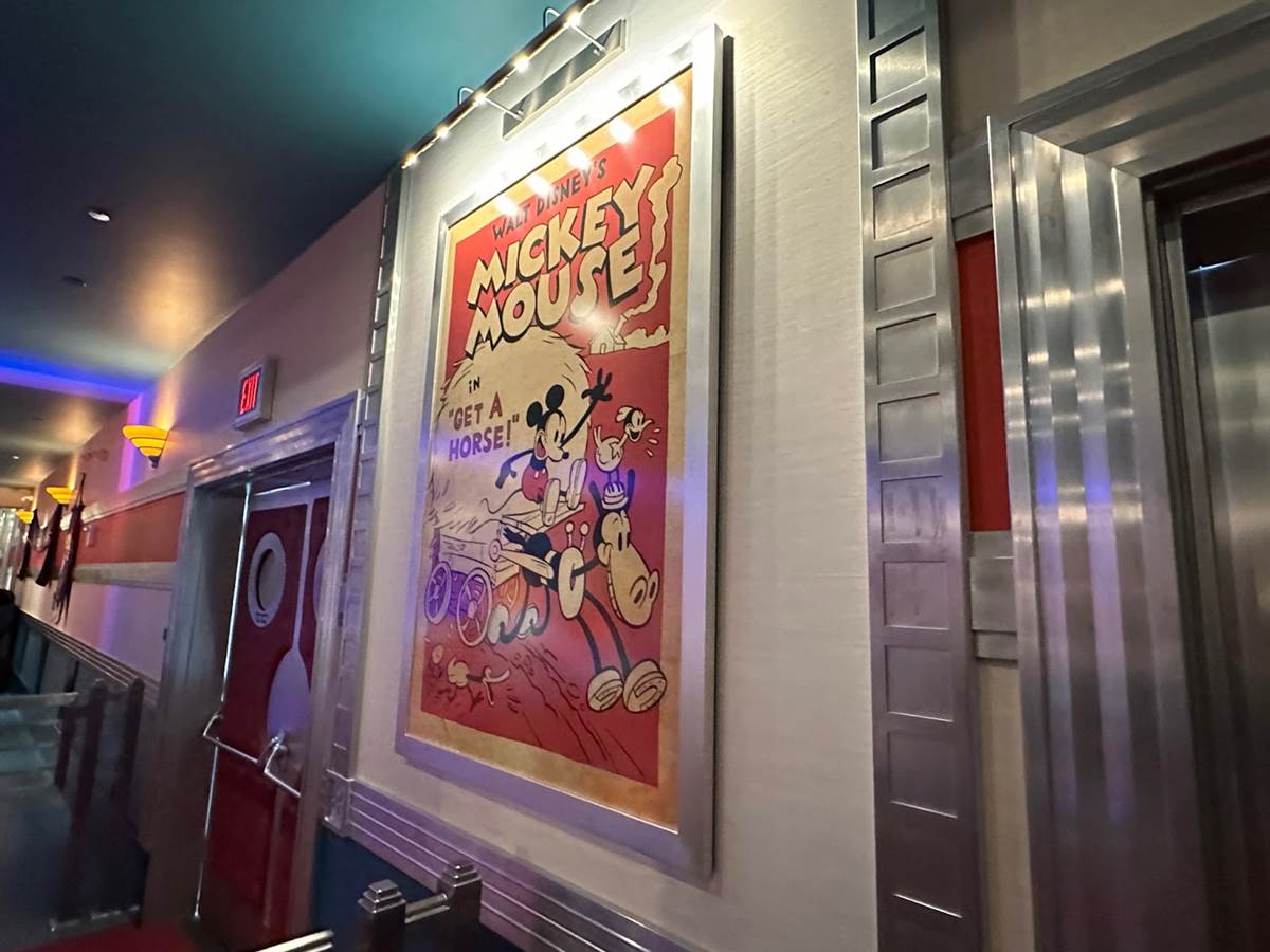More classic Mickey short posters can be found throughout this room of the queue.
