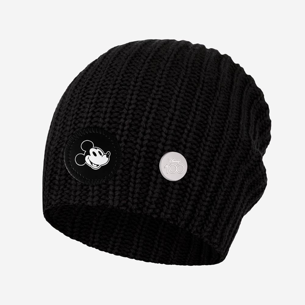 - Each beanie features a circular leather patch with a white foil Mickey or Minnie cartoon and includes a commemorative 100th Anniversary beanie charm.