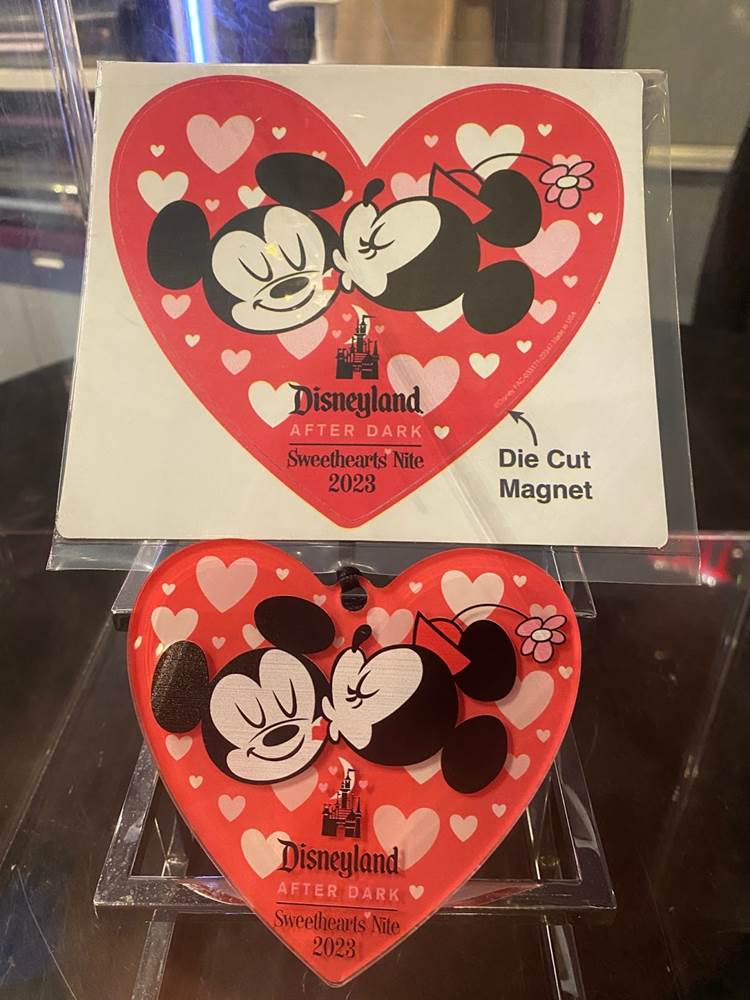 Here’s some of the Sweethearts’ Nite exclusive merchandise including a long sleeve shirt, magnet, and ornament, available at the Star Trader in Tomorrowland.