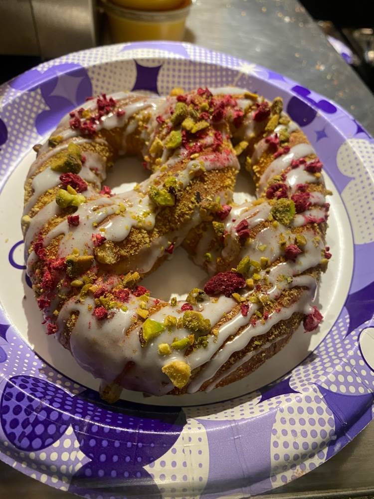 On to some of the special food items, such as the Kiss-tachio Raspberry Pretzel and a Strawberry Cheesecake Churro available in Tomorrowland.
