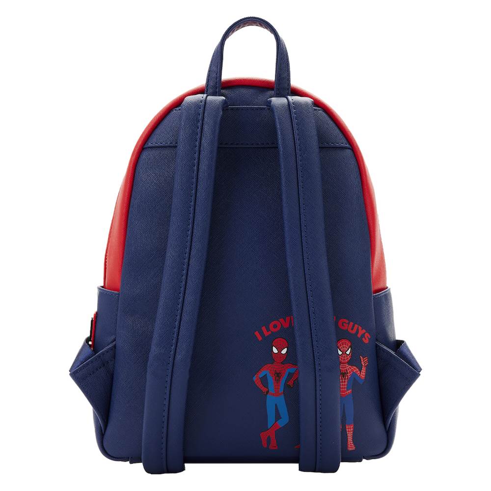 - Share the gift of friendship with your besties through a Loungefly mini backpack that features a triple pocket on the front to showcase the different Spidey suits.