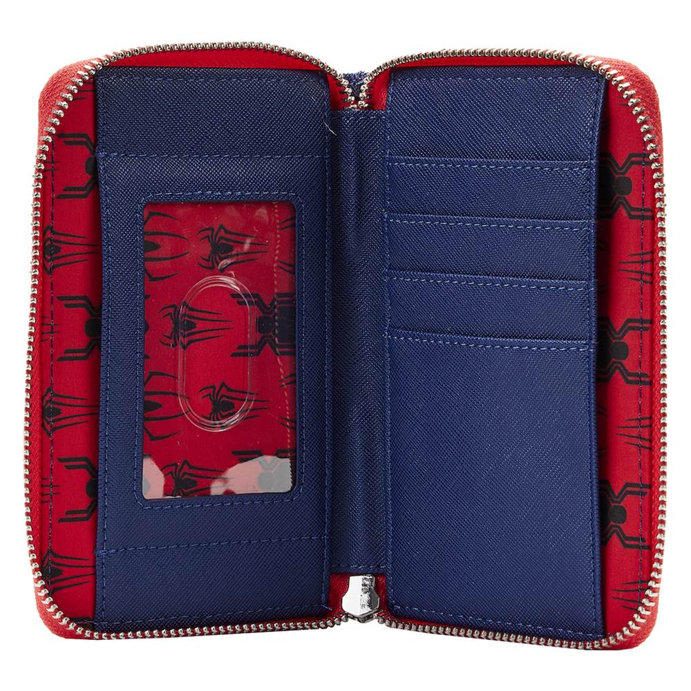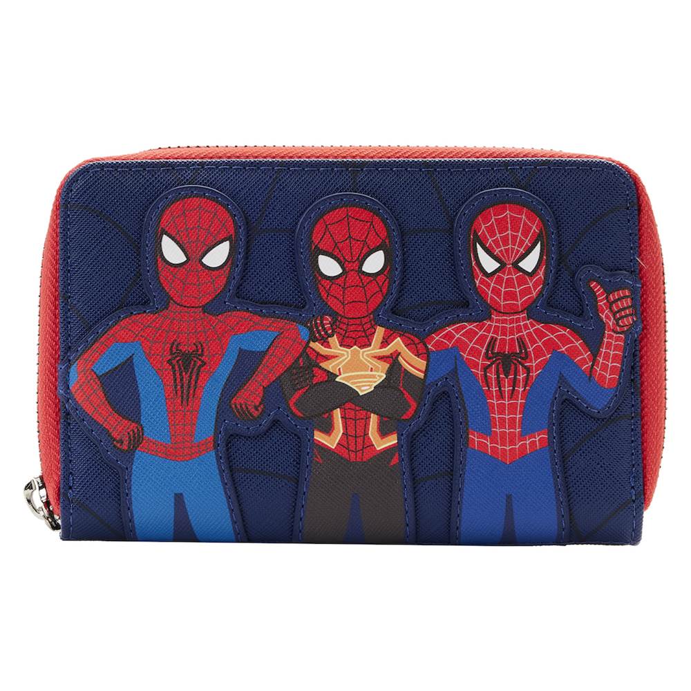 - If a card holder is more your speed, this zip around wallet is a great option. Three Peter Parkers come together across a web of space and time and grace the front of the accessory in their unique Spider-Man suits. A spiderweb motif and the phrase, “I love you guys" completes the look.