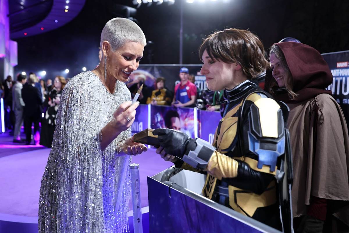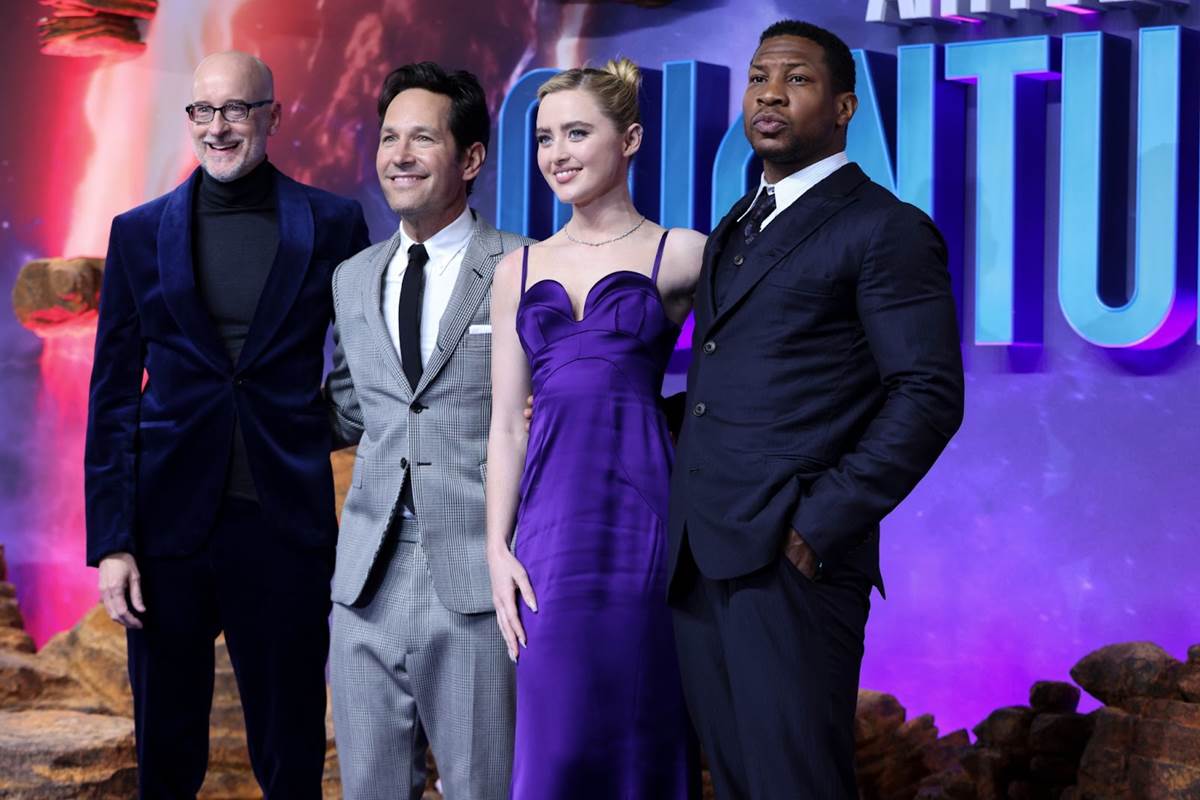 - Director Peyton Reed and stars Paul Rudd, Evangeline Lilly, Michael Douglas, Jonathan Majors and Kathryn Newton attended the event and posted for photos on the purple carpet.