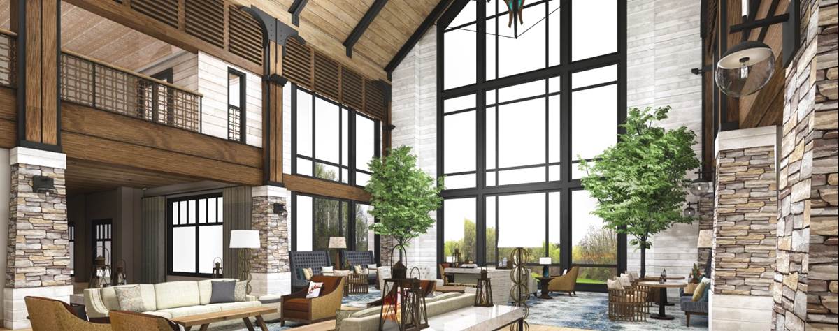 - The breathtaking arrival experience includes the porte-cochère, which invites you into the amazing 4,000 sq. ft. four-story atrium lobby where a warm stone fireplace and lantern-inspired windows create an inviting atmosphere encouraging families to spend time together.