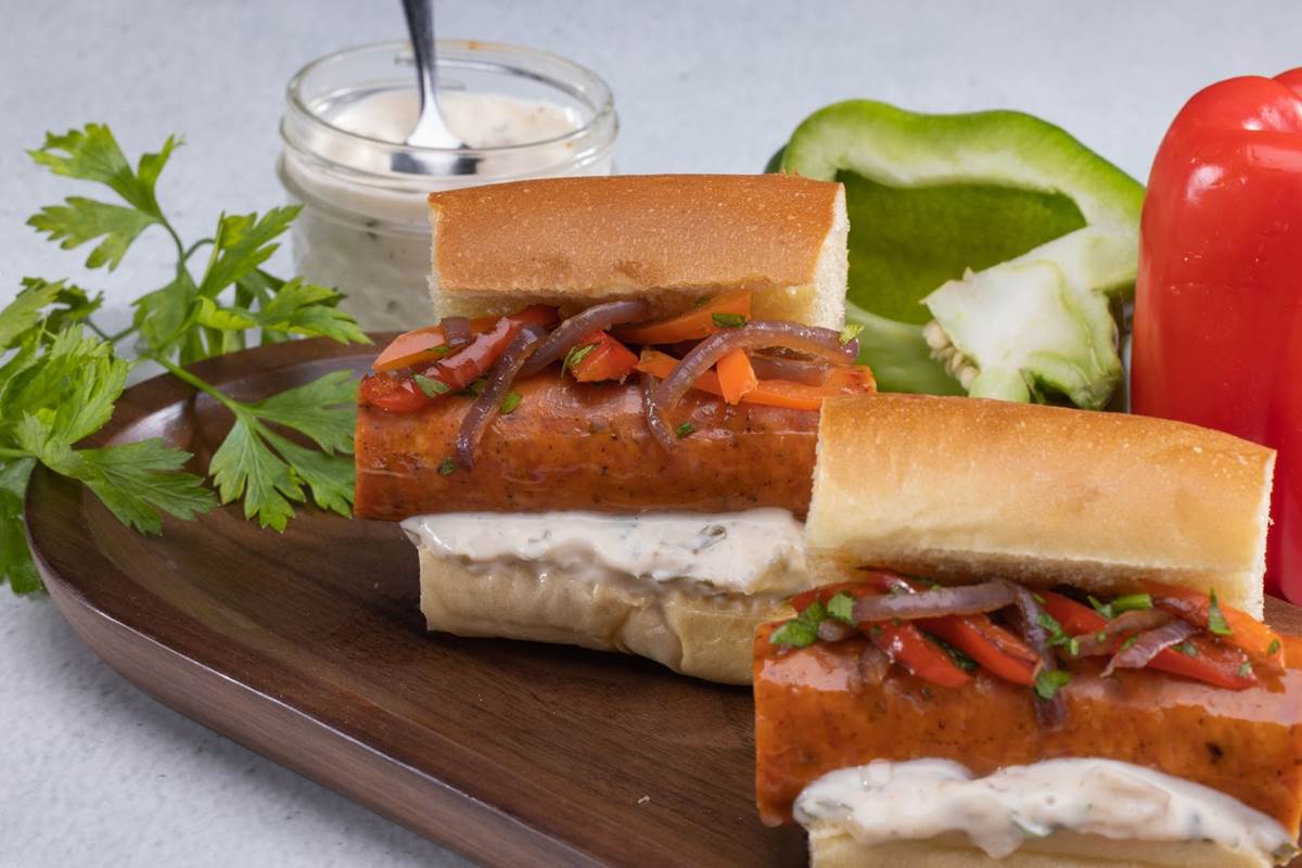 - N’awlins Po’ Boy Sliders – Smoked Andouille Sausage, Sauteed Peppers and Onions, Cajun Remoulade, Toasted French Bread