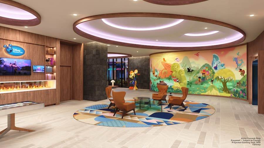 - The lobby will feature a one-of-a-kind mural created exclusively for The Villas at Disneyland Hotel by Disney Animation artist Lorelay Bové.