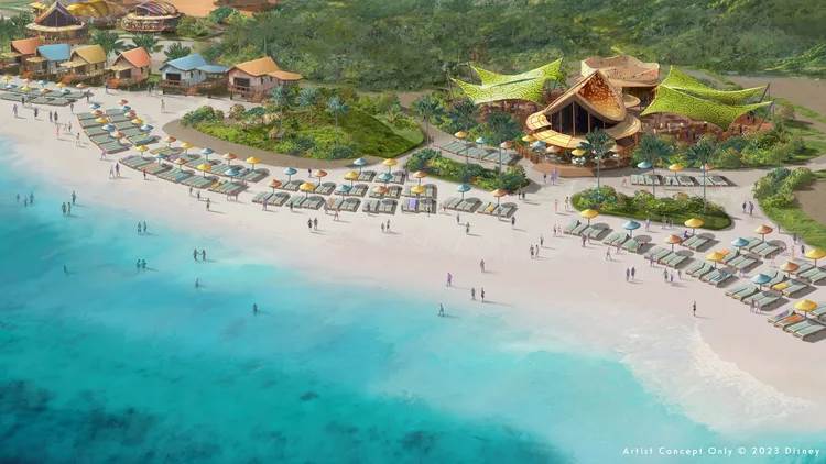 - Disney’s new island destination is being thoughtfully designed to provide a hassle-free experience for families, including complimentary beach essentials (towels, chairs and umbrellas and lunch) and convenient tram transportation.