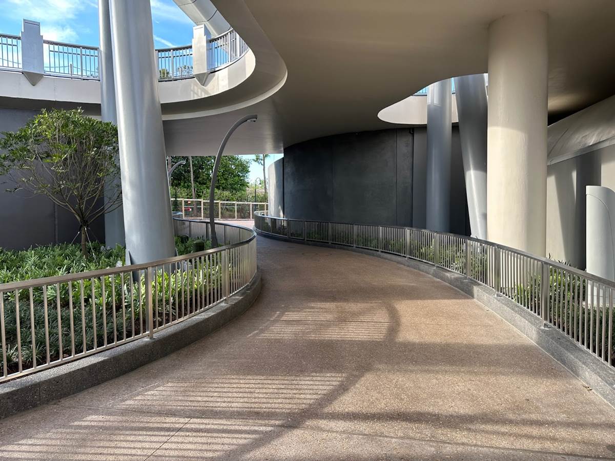 The new pathway is located to the left of the main path leading to TRON Lightcycle / Run. It then weaves underneath said main path, leading guests to the right of The Barnstormer.