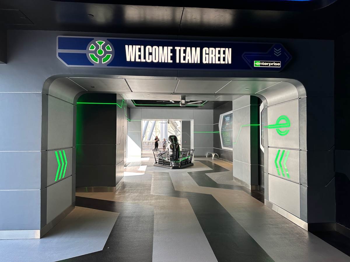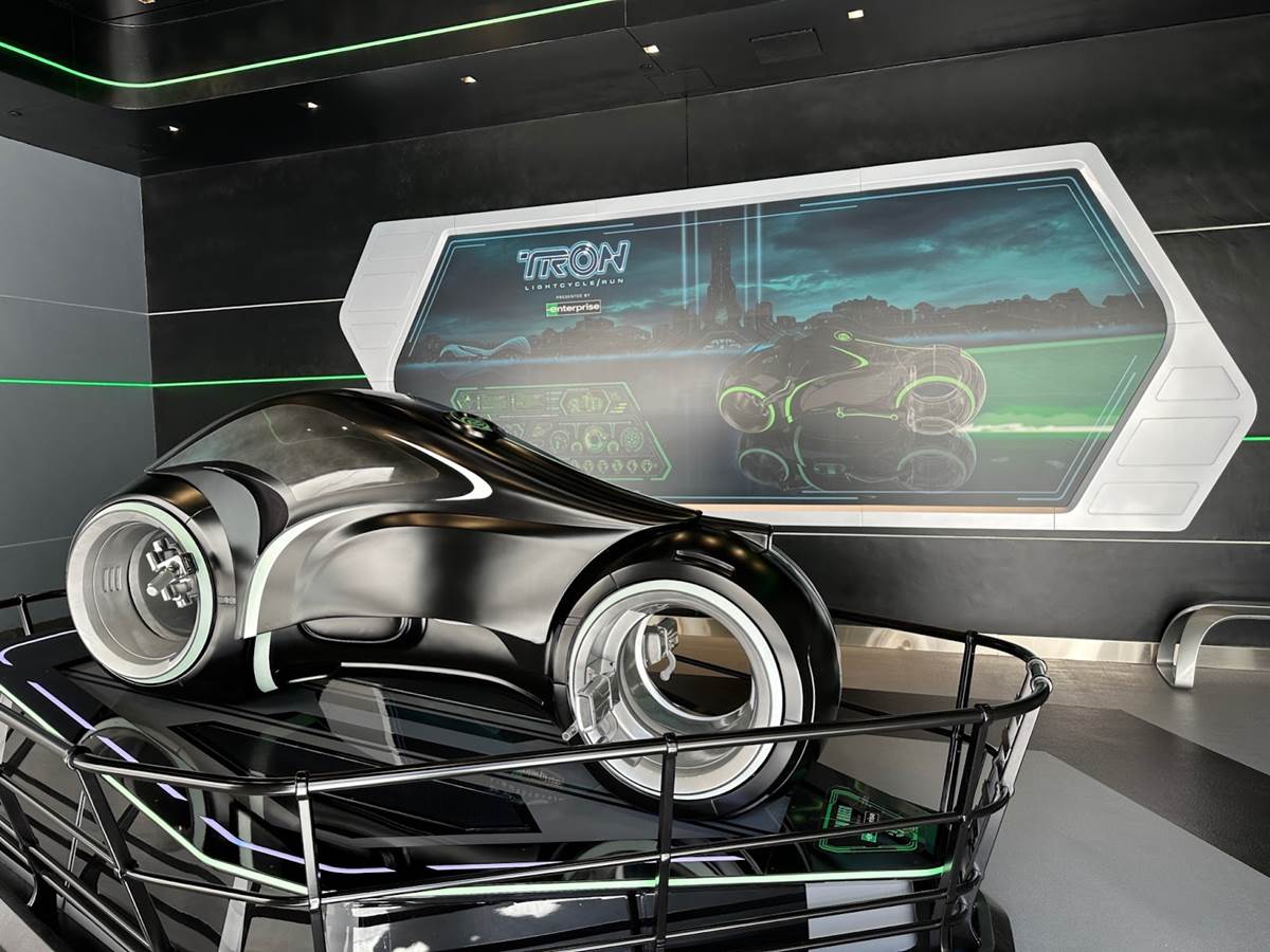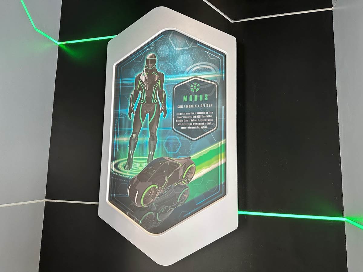 At today’s media event previewing TRON Lightcycle / Run ahead of its official opening on April 4th, 2023, we got our first look inside the Team Green post-show presented by Enterprise.