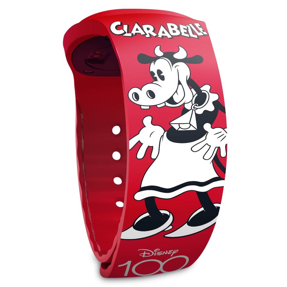 “Part of the Disney100 Decades Collection, this MagicBand+ features a design celebrating the very dashing and long-lasting couple Horace Horsecollar and Clarabelle Cow as they appeared in Walt Disney's The Shindig".