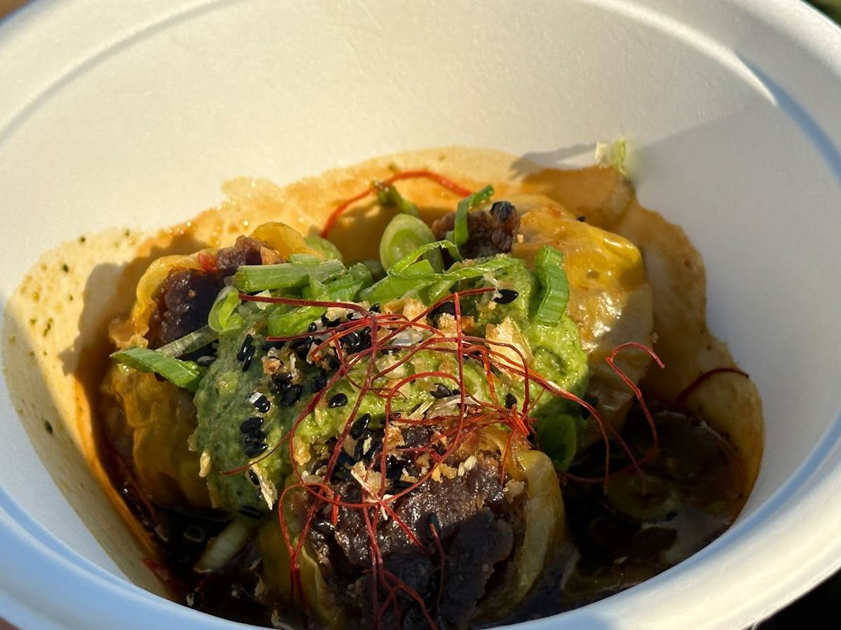 - For a savory option, try the Digital Dumplings – Beef & Broccoli, with beef dumplings, broccoli pesto, and ginger-soy broth.