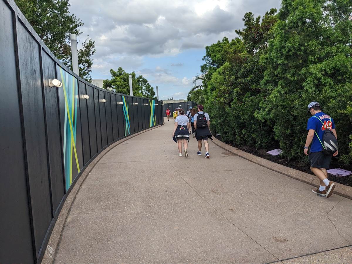 This new pathway takes guests through a corridor of construction walls, with the edge of the upcoming Journey of Water, Inspired by Moana attraction, off to the right.
